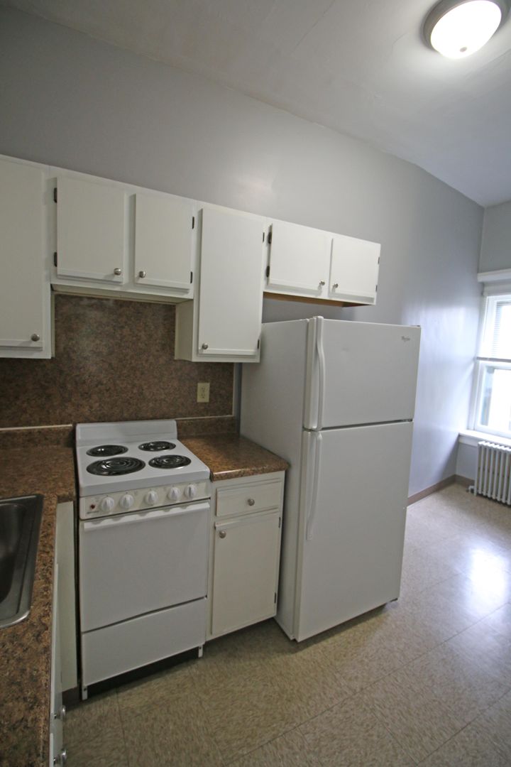3rd floor studio apartment with 1 bathroom. Refrigerator and stove included. Landlord pays heat, water, sewer, trash, lawn care and snow removal. Tenant pays electric, phone, cable and internet. Coin operated laundry on site.